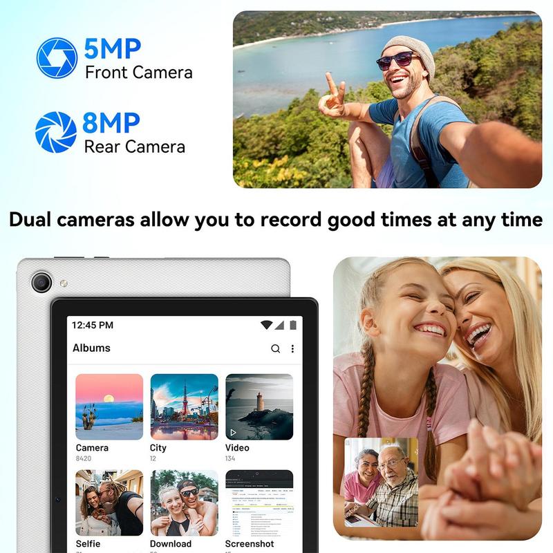 - 【Large HD Screen】The 1280*800 resolution brings brighter color clarity,10 inch large screen,wide field of view, can enjoy comfortable video watching experience. 5MP front camera + 8MP rear camera helps you to record the beautiful moments in your life all the time.